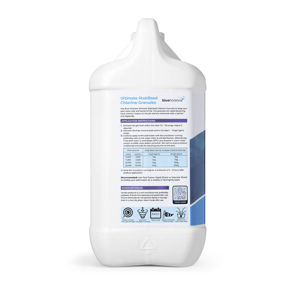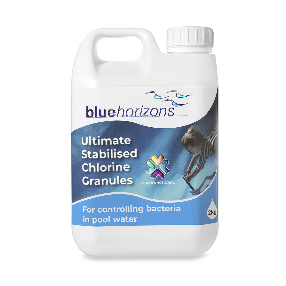 - Stabilised to minimise chlorine loss to sunlight